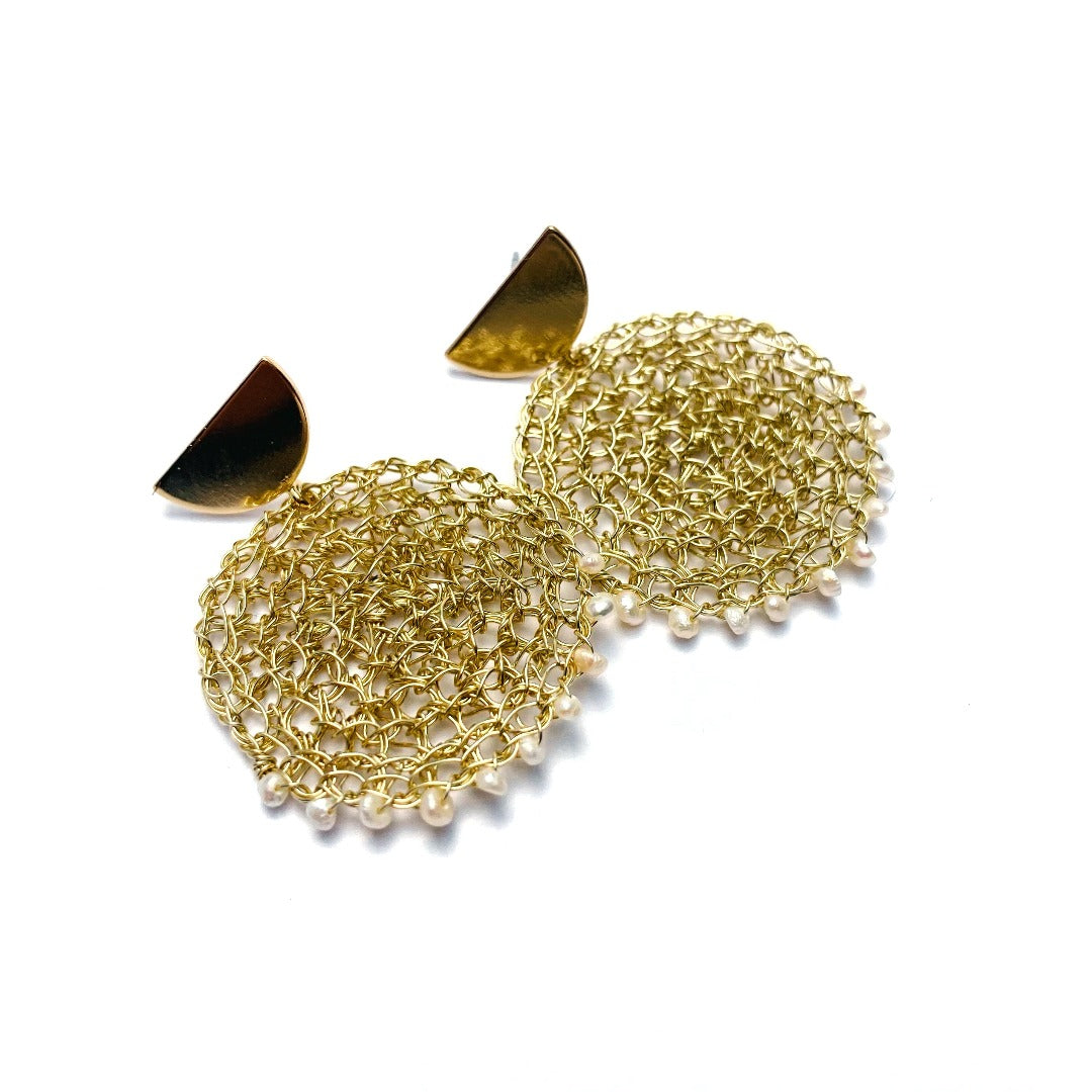 These Ahakista Earrings are a luxurious statement piece defined by intricate wire crochet and textured plated wire.