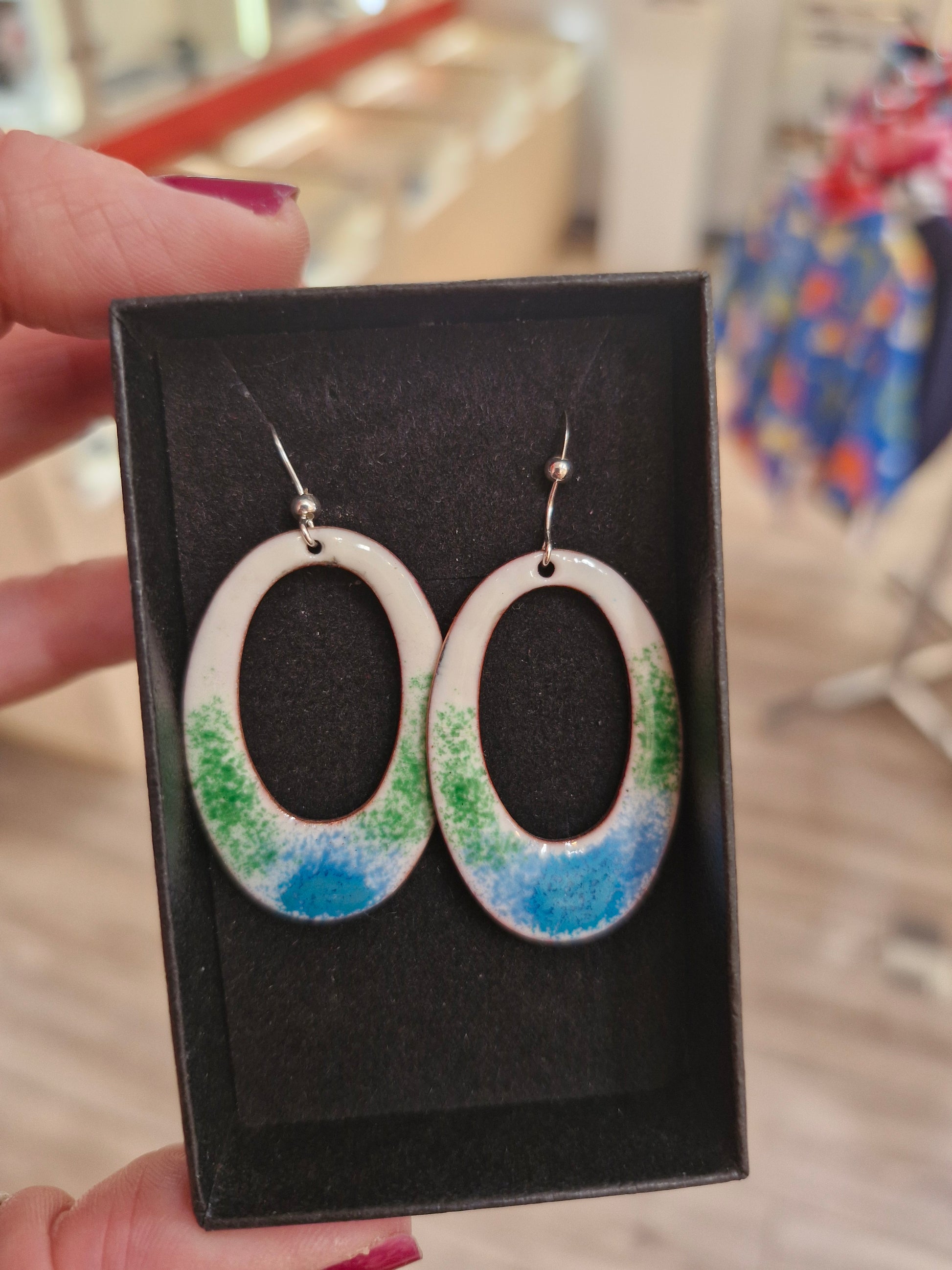 Drop from the lobe is 5cm , enamel bead 4 x 2 cm approx