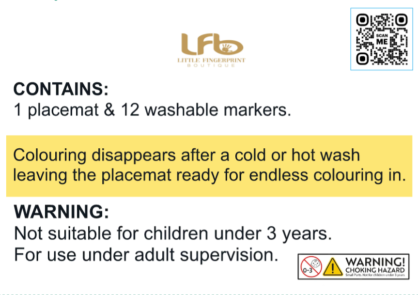 Each placemat comes with 12 washable markers, allowing kids to colour, wash, and redesign over and over again. Simply wash the placemat, and the colours fade away, leaving a blank canvas for a new masterpiece.