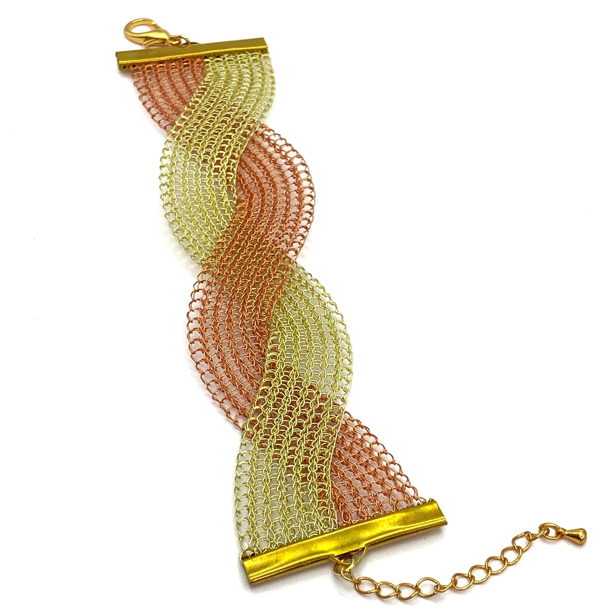 The Nenagh Bracelet boasts an elegant and unique design, crafted with premium non-tarnish copper wire and a brass clasp featuring an adjustable extension chain to fit any wrist size.