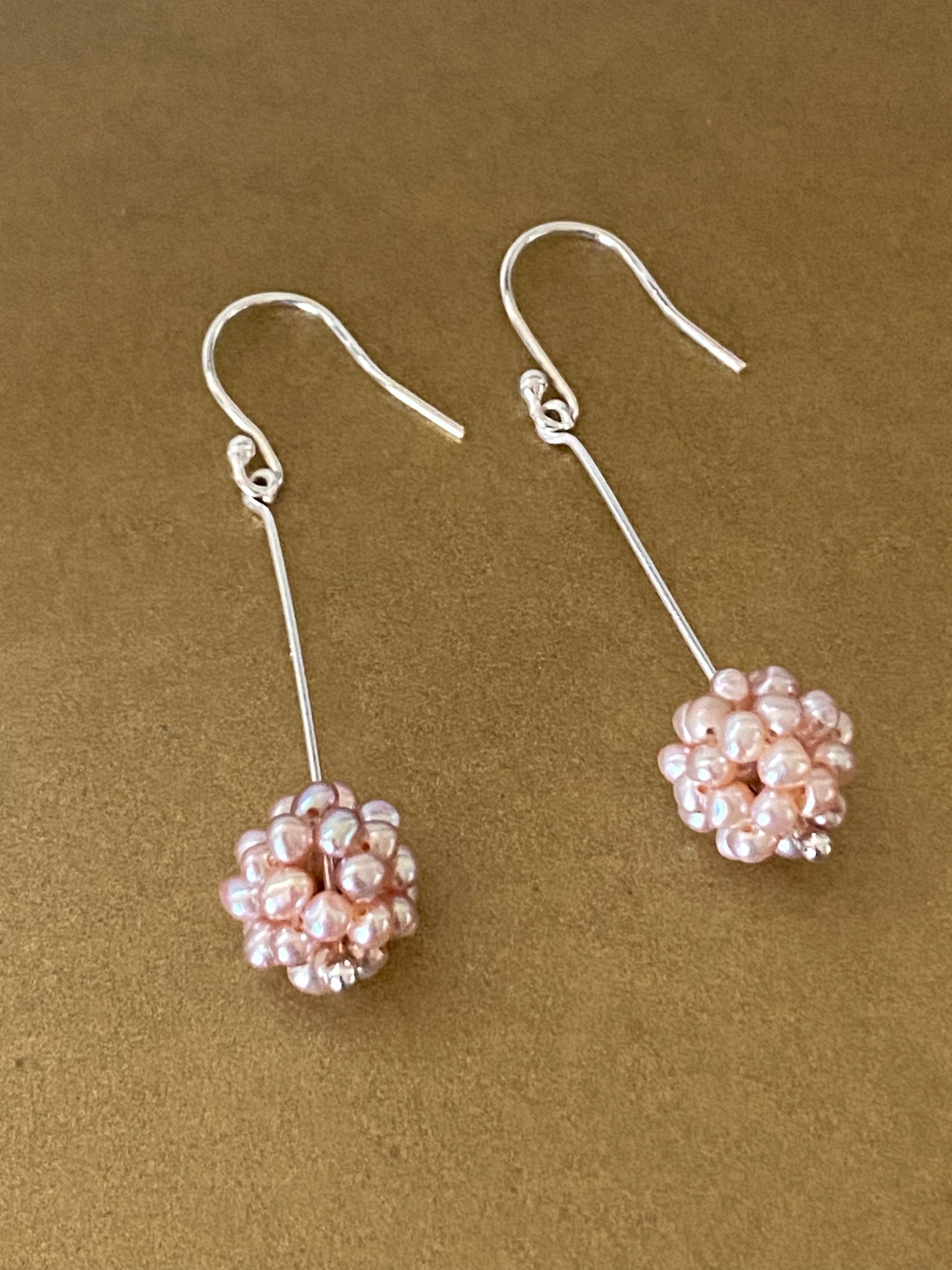 Bundle of Peacock Fresh Water Pearls on long Sterling Silver stem Earrings.