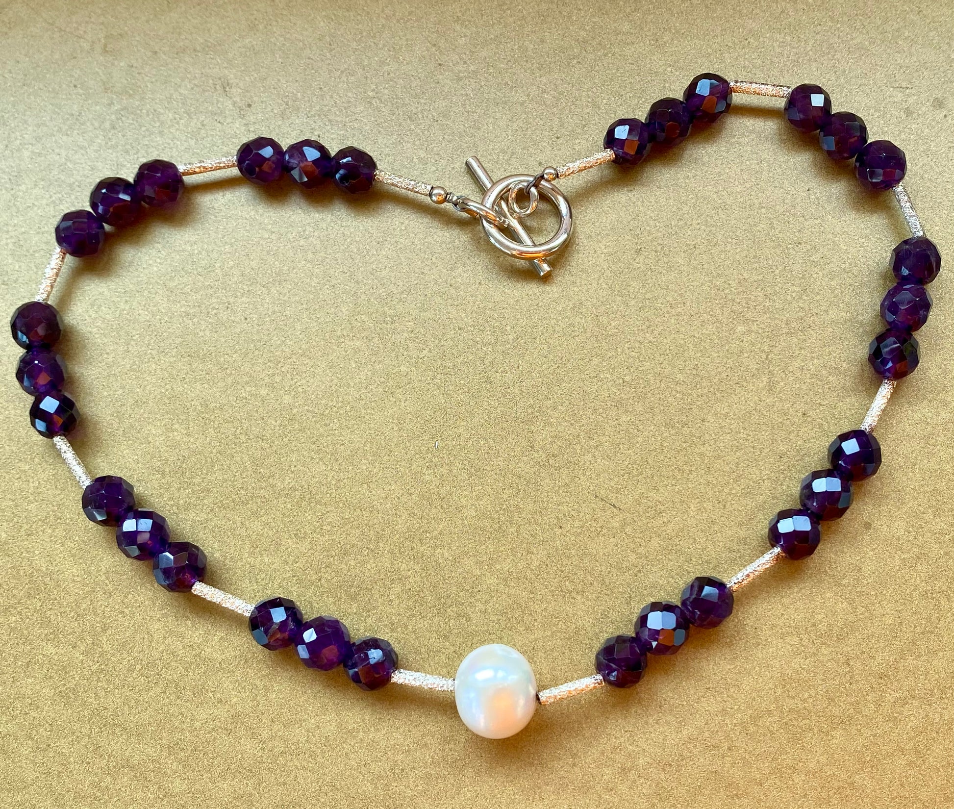 Unique Cultured Pearl and Amethyst Sterling Silver Necklace.
