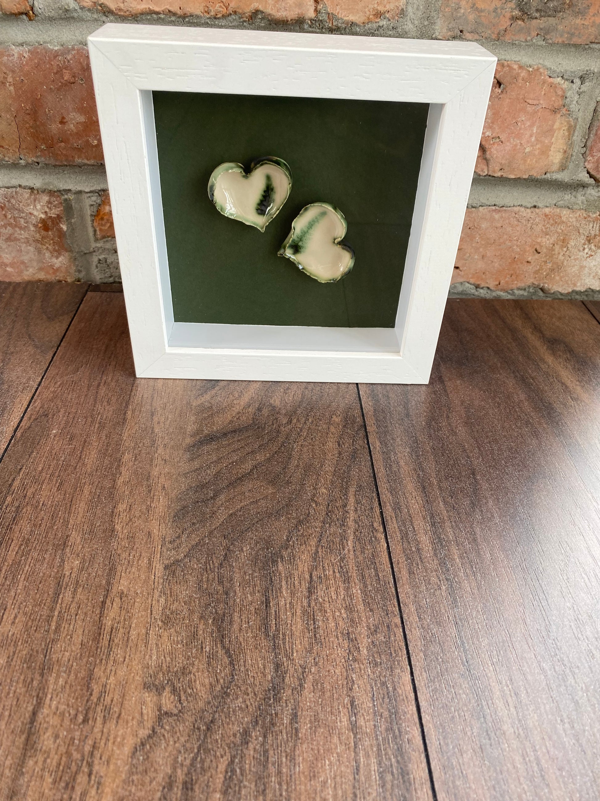 Celebrate love that lasts with this charming small frame featuring two ceramic hearts nestled on a lush green background imprinted with delicate ferns. The design captures the spirit of strong, enduring love with a playful touch, making it a sweet reminder of connection and growth. Perfect as a thoughtful gift or a cheerful accent in your space.