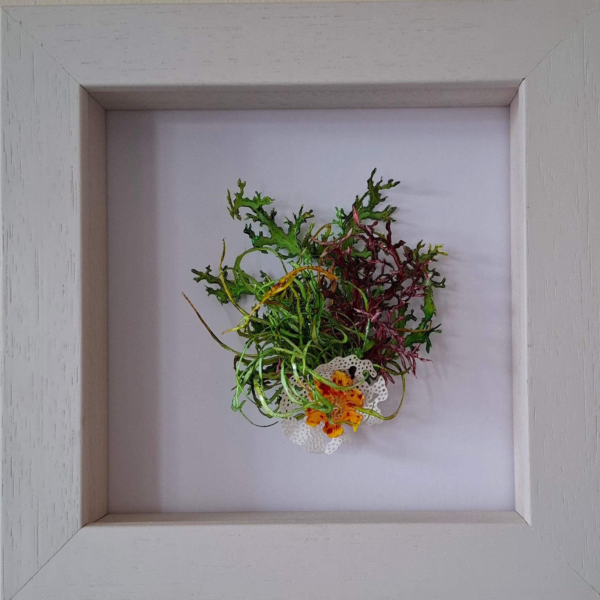 Hand cut out inks on recyclable synthetic paper and built in layers. 195mm x 195mm